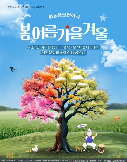 [파이낸셜경제=김예빈 기자] 함안군은 2025 공연장상주단체육성지원사업의 일환으로, 풍물패 청음의 창작 신작공연 '봄 여름 가을 겨울'을 오는 8월 12일부터 14일까지 매일 오전 10시 30분, 총 세 차례 함안문화예술회관 대공연장에서 선보인다고 밝혔다.