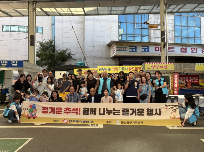 [파이낸셜경제=김예빈 기자] 울산중구가족센터(센터장 서선자)가 추석을 맞아 9월 27일(토) 오후 2시 구역전시장 일원에서 취약계층과 함께하는 전통시장 장보기 행사를 개최했다.