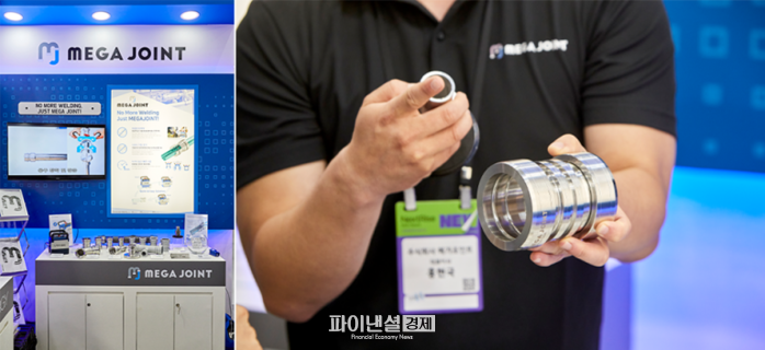안전하고 간편한 배관 체결 신기술인 ‘metal-to-metal’ 실링 기술을 국내 최초 적용 및 상용화시킨 ‘메가조인트’가 5번째 참여 기업이다. ‘메가조인트’가 제공하는 시스템은 전용 체결 공구를 이용해 배관을 기계적으로 체결하기 때문에 화재 및 폭발의 위험이 없는 안전한 환경에서 배관 연결 작업이 가능하다. 현장에서는 친환경 소재들을 활용한 ‘메가조인트’의 전용 체결 공구들이 부스 방문자들에게 상세히 소개되고 있었다.