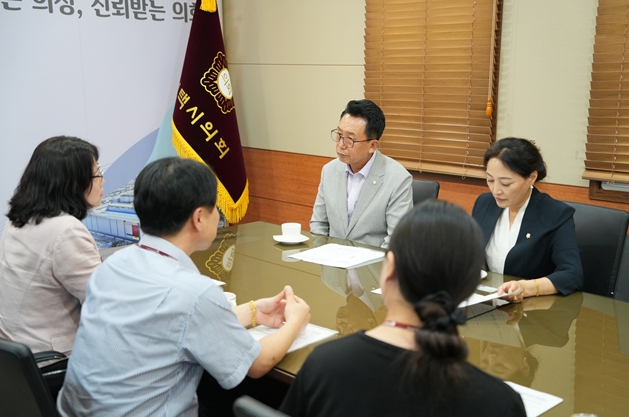 이번 접견을 통해 강정구 의장은 김미선 국민건강보험공단 평택지사장의 부임을 축하하며 공단 직원의 노고에 감사의 마음을 전하고 의료복지서비스의 방향과 맞춤형 민원 지원에 대해 모색하는 시간을 가졌다.