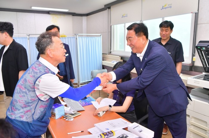 | ▲ 민생회복 소비쿠폰 지급 첫날인 21일 김한종 장성군수가 장성읍 행정복지센터를 찾았다 |