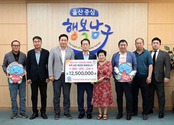 [파이낸셜경제=김예빈 기자] 바르게살기운동 울산남구협의회(회장 김동현)는 9일 울산 남구청을 방문해 고향사랑 기부제를 응원하며 1,250만원을 경남 고성군, 경북 예천군, 대구 군위군과 상호 기부했다.