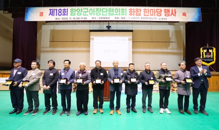 [파이낸셜경제=김예빈 기자] 함양군은 11월 18일, 오전 11시 고운체육관에서 행정과 주민 간의 가교 역할을 하는 이장들이 한자리에 모여 ‘제18회 함양군이장단협의회 화합 한마당 행사’를 가졌다고 밝혔다.