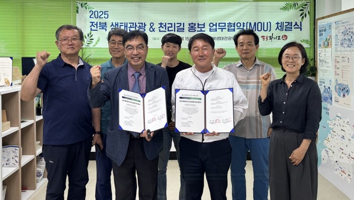 [파이낸셜경제=김예빈 기자] 전북특별자치도는 7월 15일 전북생태관광육성지원센터(센터장 두양수)가 사진동호회 ‘포토라이프 원’(회장 김진국)과 함께 생태관광 및 천리길 관련 사진 콘텐츠 공동 홍보를 위한 업무협약(MOU)을 체결했다고 밝혔다.