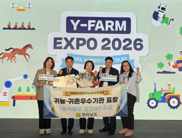 [파이낸셜경제=김예빈 기자] 전라남도는 24일 수원컨벤션센터에서 열린 ‘2026 와이팜 엑스포(Y-FARM EXPO)’에서 농림축산식품부의 농업인력육성시책 추진 유공자 표창에서 귀농어귀촌 우수시책 추진기관으로 선정돼 장관상을 받았다.