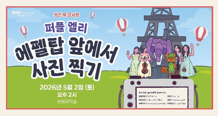 [파이낸셜경제=김지훈 기자] 비원뮤직홀에서는 어린이날을 기념하기 위해 아이와 가족이 함께 감상할 수 있는 키즈 북 콘서트 ‘퍼플 엘리 – 에펠탑 앞에서 사진 찍기’를 오는 5월 2일 개최한다.