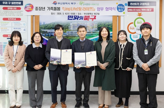 [파이낸셜경제=박영진 기자] 부산 북구는 4일 만덕종합사회복지관과 가족돌봄 중장년 가구를 지원하는 ‘Ling:Life(링:라이프)’ 사업 추진을 위한 업무협약을 체결했다고 밝혔다.