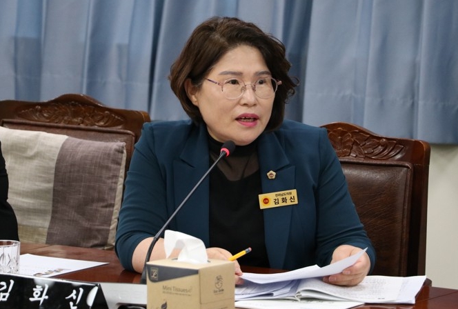 | ▲ 김화신 의원 2025년도 인재평생교육진흥원 소관 업무보고에 대해 질문하고 있다. |