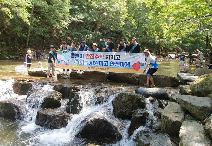 [파이낸셜경제=김예빈 기자] 광주시교육청은 30일 전북 강천사 계곡에서 ‘물놀이 안전사고 예방 캠페인’을 실시했다.