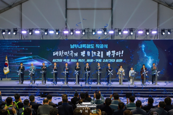 [파이낸셜경제=김예빈 기자] 이재명 대통령은 6일 "남부내륙철도는 단순히 선로 하나를 놓는 사업이 아니다"라며 "수도권에 모든 것이 집중된 '일극 체제'에서 벗어나 사람과 지역을 잇고, 기회를 연결하며, 지역의 성장동력을 만들어내는 국토 대전환의 시작"이라고 말했다.