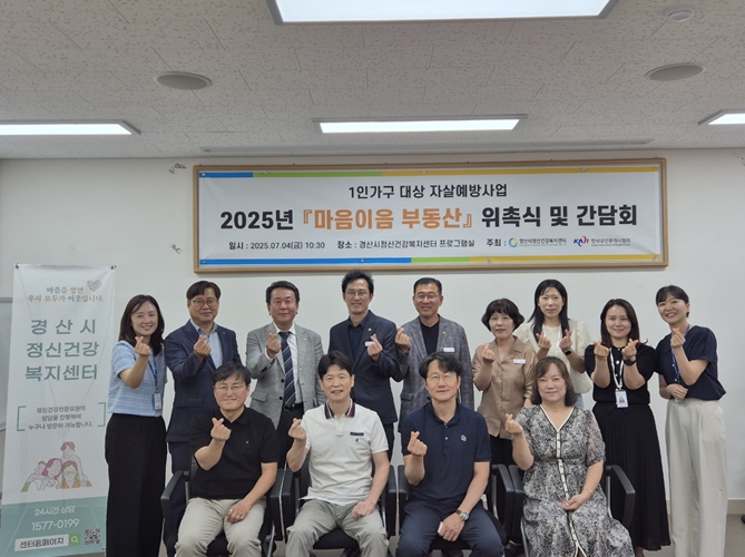 [파이낸셜경제=김지훈 기자] 경산시정신건강복지센터(센터장 이성용)는 4일 한국공인중개사협회 경산시지회와 함께 1인 가구 자살 예방을 위한 '마음이음 부동산'자살예방사업 협력 간담회 및 위촉식을 개최한다고 밝혔다.