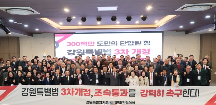 최양희 협의회장은 “오늘은 강원특별자치도의 성과를 함께 축하하는 날이 돼야 했지만, 어제 행안위에서 3차 개정을 또 미루는 바람에 오히려 우리의 결의를 더 크게 보여줘야 하는 날이 됐다”라며, “각 지역에서 올라오신 위원 여러분의 지혜와 네트워크가 어느 때보다 절실하다”라고 말했다.