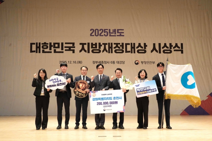 [파이낸셜경제=조성환 기자] 춘천시가 16일 행정안전부 주관 2025 대한민국 지방재정대상에서 민생회복소비쿠폰 집행 분야 전국 최상위 성과를 인정받아 ‘가’등급에 이름을 올렸다.