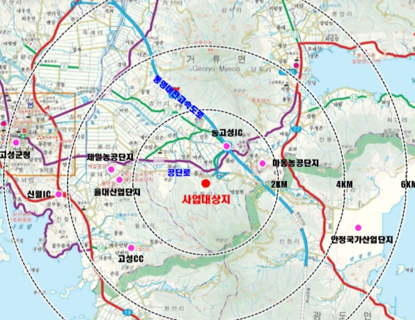 고성 스마트일반산업단지(고성군 거류면 은월리)는 통영대전고속도로와 인접해 교통 접근성이 우수하고, 인근 산업단지와 연계가 쉬워 기업 간 협력 효과를 극대화할 수 있는 입지로 평가된다. 첨단·스마트 제조기업 유치를 위한 부지를 개발해 고용 창출과 지역 인구 증가 등 지역 성장 기반을 확충할 예정이다.
