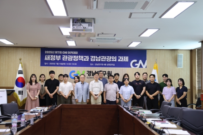 [파이낸셜경제=김예빈 기자] 경남연구원은 10일 오후 2시 경남연구원 4층 남명경의실에서 정란수 프로젝트 수 대표를 초청해 ‘새정부 관광정책과 경남관광의 과제’를 주제로 제7회 GNI 아카데미를 개최했다고 밝혔다.