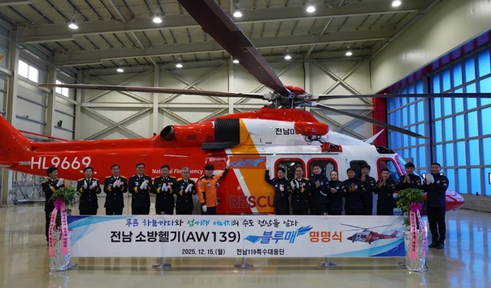주영국 전남소방본부장은 “오늘 명명식은 헬기에 명칭을 부여하는 단순한 행사를 넘어 항공구조 역량을 더욱 강화하고, 신속하고 전문적인 항공 구조·구급체계를 구축해 도민이 체감할 수 있는 안전 서비스를 제공해 나가겠다.”고 말했다.