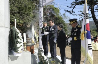 @nnin.lna   연못가에 드리운 푸른 수풀 사이, 군복 차림으로 거수경례를 하고 선