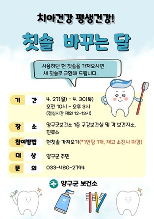 양구군, 보건의 날 기념 ‘낡은 칫솔 새 칫솔로 바꿔드려요’