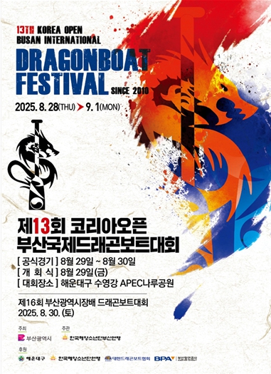 [파이낸셜경제=박영진 기자] 부산시는 오늘(28일)부터 9월 1일까지 5일간 수영강 에이펙(APEC) 나루공원 일원에서 '제13회 코리아오픈 부산국제드래곤보트대회 및 제16회 부산광역시장배 드래곤보트대회'를 개최한다고 밝혔다.