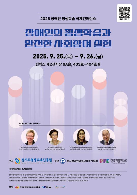 [파이낸셜경제=김영란 기자] 경기도와 경기도평생교육진흥원이 26일 고양 킨텍스 제2전시장 6A홀에서 ‘2025 장애인 평생교육 국제 학술대회’를 개최한다. 장애인 평생학습권 보장을 위해 국내를 넘어 국제적 차원의 논의장을 마련한 것은 이번이 전국 최초이다.