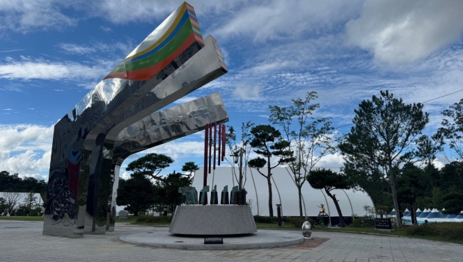 [파이낸셜경제=김기보 기자] 영동세계국악엑스포조직위는 영동세계국악엑스포 개막과 함께 행사장 내에 설치된 상징 조형물‘전통의 울림, 미래를 울리다’의 제막식을 26일 개최했다.