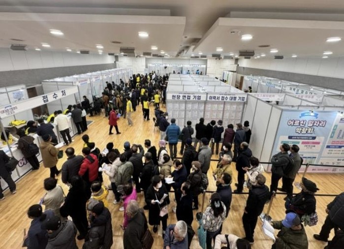 참여한 32개 민간업체 중 17개 업체가 현장에서 면접을 진행했으며, 부스마다 면접을 기다리는 어르신들로 붐볐다.