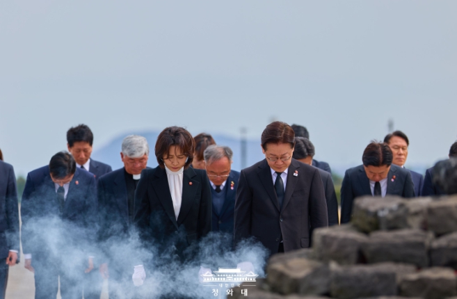 이어 이 대통령은 제주 4·3의 명예회복을 위해 최선을 다하겠다며 왜곡과 폄훼에 대응할 수 있도록 국회와의 논의를 통해 제도 개선을 추진하겠다고 말했다.