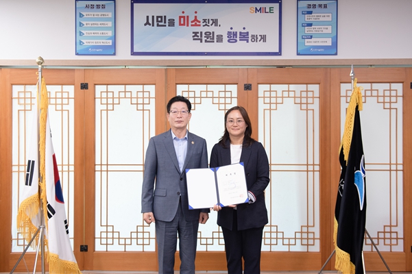 | ▲ 인천시설공단(이사장 김재보, 좌측)은 15일 김연주 인하대학교병원 인천권역심뇌혈관질환센터 예방관리센터장(우측)을 공단의 산업보건의로 위촉했다. |