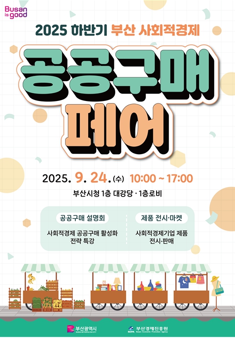 [파이낸셜경제=박영진 기자] 부산시는 내일(24일) 오전 10시 시청 1층 대강당과 로비에서 '2025 하반기 부산 사회적경제 공공구매 페어'를 개최한다고 밝혔다.