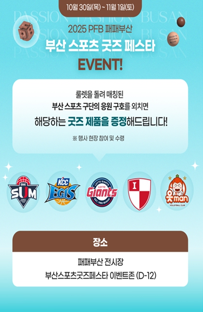 [파이낸셜경제=박영진 기자] 부산시는 오늘(30일)부터 11월 1일까지 벡스코 제1전시장 1홀에서 열리는 '2025 패패부산'과 연계한 '부산 스포츠 굿즈 페스타' 행사를 개최한다고 밝혔다.