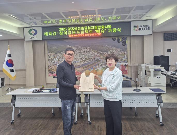 이날 영동읍행정복지센터에서 진행된 기증식에는 △서우종 영동읍장, △차미란 영동부읍장, △박영덕 영동읍 농촌중심지활성화사업 주민위원회 위원장 △이영민 이장협의회 회장 외 32명의 이장이 참석하고, 영동군지역활성화센터 △박엄용 센터장, 목공 전달자 10여 명 등이 참석해 자리를 빛냈다.