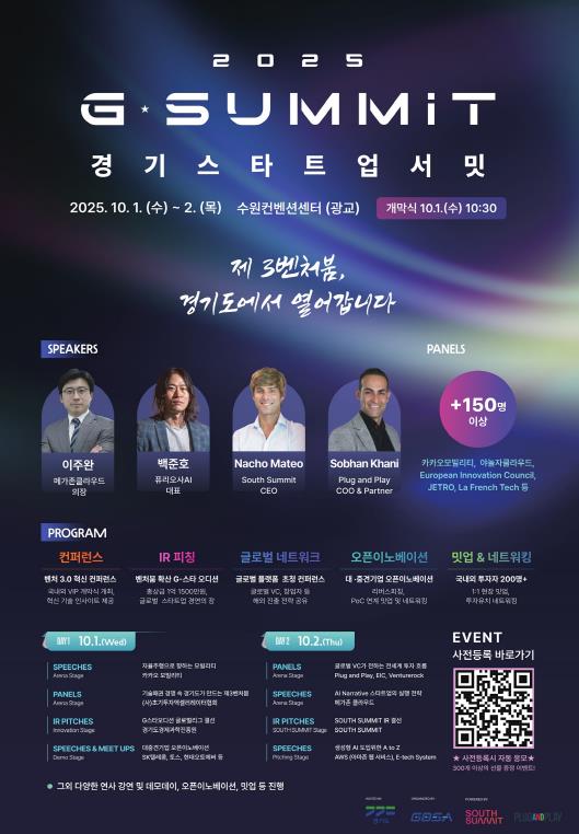 [파이낸셜경제=김영란 기자] 국내 최고 수준의 글로벌 스타트업 투자 박람회인 ‘경기 스타트업 서밋(G-SUMMIT)’이 오는 10월 1일부터 2일까지 수원컨벤션센터에서 열린다.