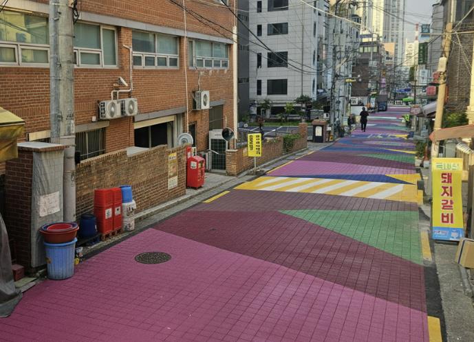 공사 전에는 갈라진 도로포장과 벗겨진 바닥 도색 등으로 낙후된 이미지를 줬다. 이는 곧 보행 안전과 골목 상권에도 좋지 않은 영향을 미쳤다.