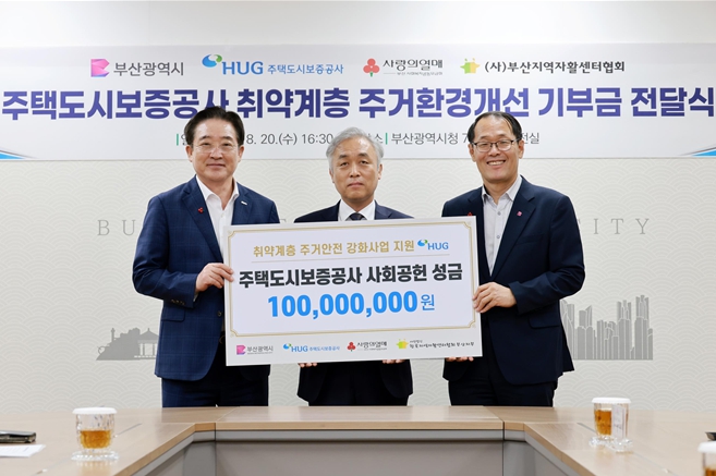 이날 전달식에서 주택도시보증공사(HUG)는 취약계층의 주거환경 개선을 위한 사업비 1억 원을 기부했다.