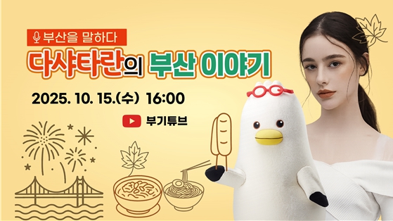 [파이낸셜경제=박영진 기자] 부산시는 오늘(15일) 오후 4시 시 소통캐릭터 '부기'의 유튜브채널(부기튜브)을 통해 '홍보대사 다샤 타란의 부산을 말하다' 라이브 방송을 개최한다고 밝혔다.