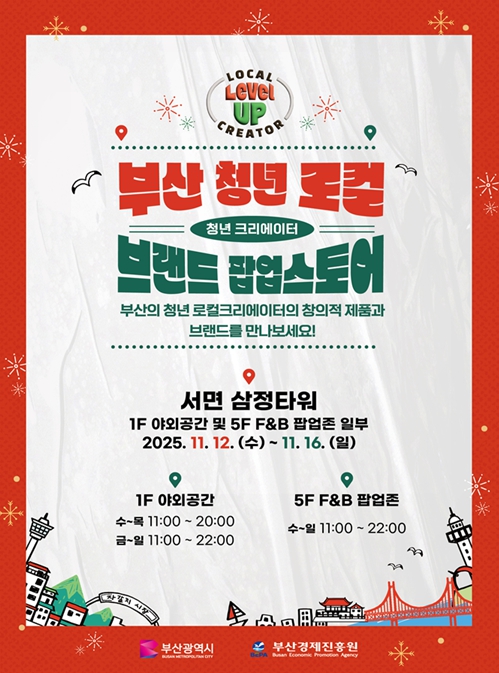 [파이낸셜경제=박영진 기자] 부산시와 부산경제진흥원은 오늘(12일)부터 16일까지 5일간 서면 삼정타워에서 '2025 부산 청년 로컬 브랜드 팝업스토어'를 개최한다고 밝혔다.