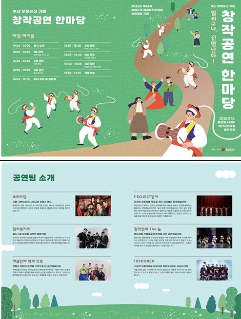 이번 공연은 전승 중심의 무형유산을 현대적 감각으로 재해석해 시민에게 소개하고, 지역 예술가들의 창작 활동을 지원하기 위해 마련했다.