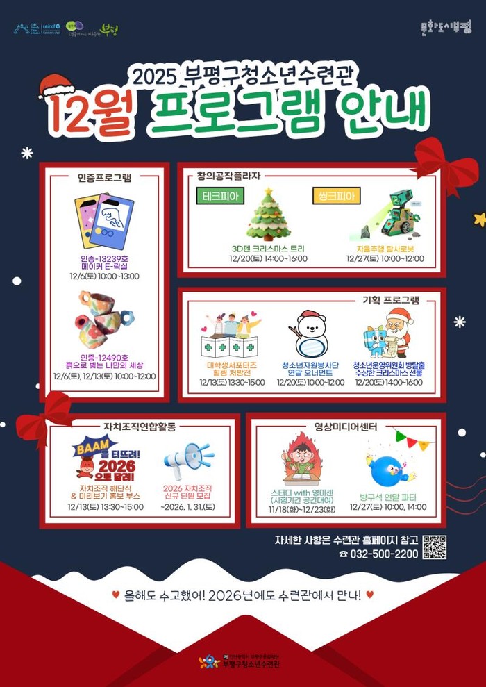 [파이낸셜경제=김기보 기자] 부평구(구청장 차준택) 청소년수련관은 12월에도 다채로운 분야의 체험형·진로탐색형 프로그램을 운영한다.