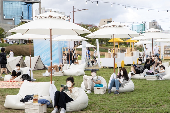 빈백, 파라솔, 텐트 등 편안한 휴식 공간을 조성해 시민들에게 쉼과 독서가 어우러진 열린 공간을 제공했다.