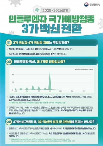 2025~2026절기부터 인플루엔자 백신은 세계보건기구(WHO)의 권고사항과 예방접종전문위원회 심의에 따라 기존 4가 백신에서 3가 백신으로 전환하여 시행된다.