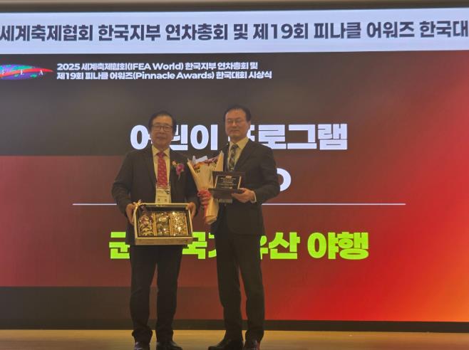 [파이낸셜경제=김예빈 기자] 군산시가 지난 1일 부여에서 개최된 세계축제협회(IFEA World) 한국지부 주최 ‘2025년 세계축제협회 피나클 어워즈에서 ‘군산국가유산야행’으로 2개 부문 수상(어린이 프로그램 부문 금상, 주민주도형 프로그램 부문 동상)의 영예를 안았다.