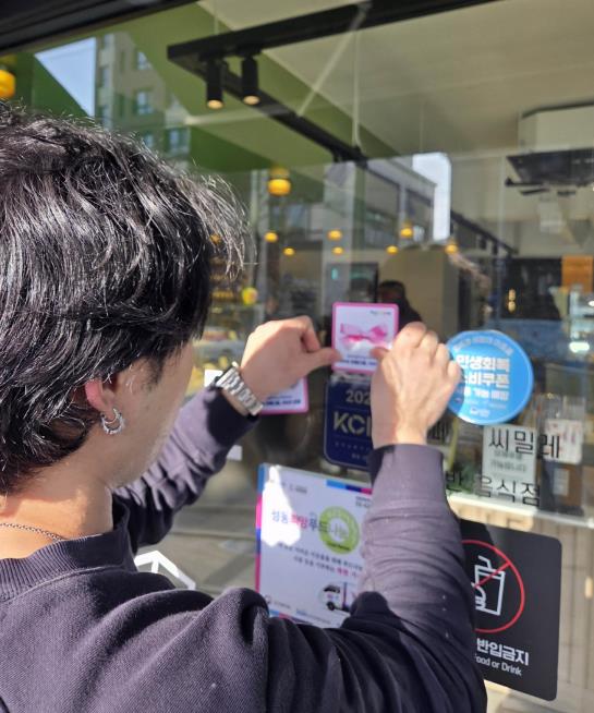 | ▲ 성동형 지속 기부자인 사업체에서 ‘SD리본 스티커’를 부착하고 있는 모습 |