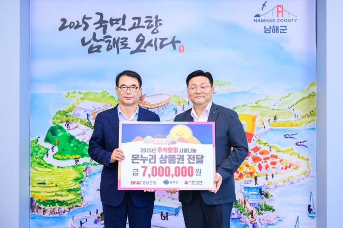 [파이낸셜경제=김예빈 기자] 남해군은 지난 30일 BNK경남은행 남해지점이 추석 명절을 앞두고 700만원 상당의 온누리상품권을 기탁했다고 밝혔다.