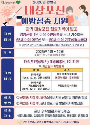 또한, 군은 물품 배부 시 겨울철 건강 관리 수칙, 한파 대비 행동 요령, 외출 시 유의 사항 등이 담긴 홍보물을 함께 전달해 주민들이 스스로 안전을 지킬 수 있도록 안내할 예정이다.