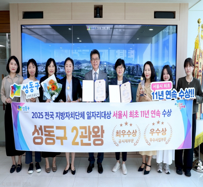 | ▲ 성동구가 ‘전국 지방자치단체 일자리대상’에서 서울시 최초로 11년 연속으로 수상했다. |