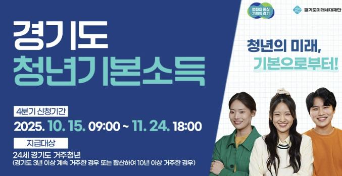 [파이낸셜경제=김기보 기자] 안산시는 다음 달 24일까지 관내 거주하는 24세 청년을 대상으로 ‘2025년 4분기 청년기본소득’ 신청 접수를 진행한다고 22일 밝혔다.