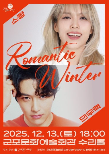 [파이낸셜경제=김기보 기자] 군포문화재단은 오는 12월 13일 오후 6시, 군포문화예술회관 수리홀에서 연말 기획공연 “소향×민우혁 콘서트 'Romantic Winter'”를 개최한다.