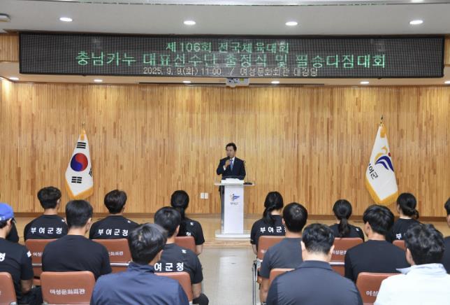 이날 출정식에는 박정현 부여군수, 김영춘 부여군의회 의장, 김달호 충청남도카누협회장, 황석연 부여교육지원청 교육장 등 관계자와 선수단이 참석했다.