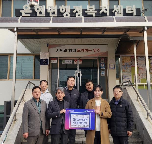 이용배 은현면장은 “수년째 성금 기탁과 봉사활동을 통해 은현면에 꾸준한 애정을 보내주신 양주로터리클럽 은남석찬회 회원 여러분께 깊이 감사드린다”며 “기부받은 성금은 지역 내 어려운 이웃들에게 실질적인 도움이 될 수 있도록 소중히 사용하겠다”고 전했다.