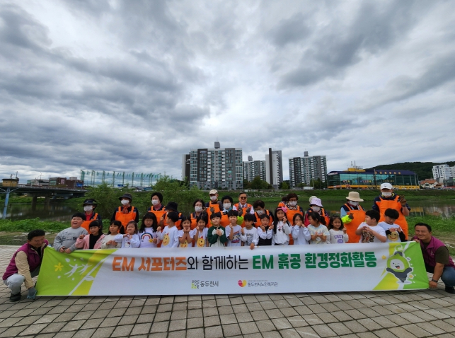 [파이낸셜경제=김기보 기자] 동두천시는 지난 14일 신천교 부근에서 동두천시노인복지관 EM서포터즈 어르신 15명과 관내 좋은열매어린이집 원아 18명이 참여한 가운데 ‘EM 흙공 던지기’ 행사를 진행했다.